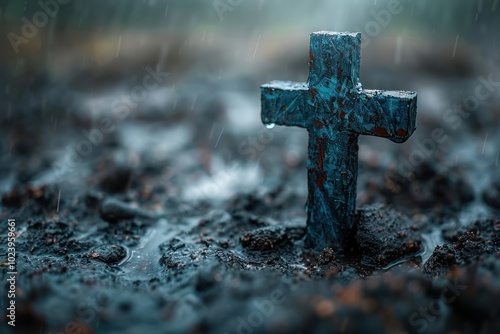 Cross of Salvation on Earth: Christian Concept in Toned 3D Rendering