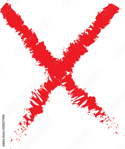 Cross sign icon in red flat style. Wrong mark symbol. NO button for checkbox voting. Disagree tick box symbol. Cross X sign. Cross brush vector illustration isolated on transparent background.