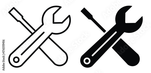 Crossed Wrench and Screwdriver Icons for Repair and Maintenance Themes