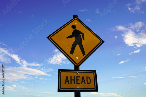 crossing ahead sign on sky background
