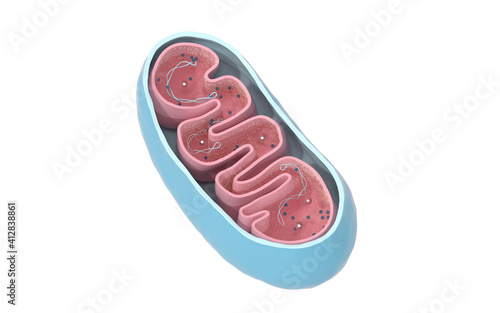 Cross-section view of Mitochondria. Medical info graphics on white background, 3d rendering.