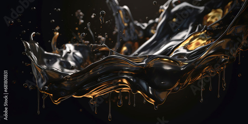 Crude Oil Drops And Splashes Close Up View, generative ai