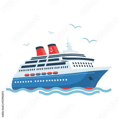 Cruise ship sailing on the ocean isolated on white background vector illustration of a liner