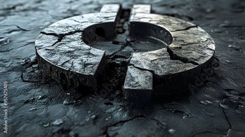 Crumbling Financial Symbol on Cracked Pedestal Representing Market Challenges