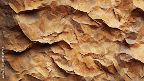 Crumpled aged textured paper, a sepia abstract.