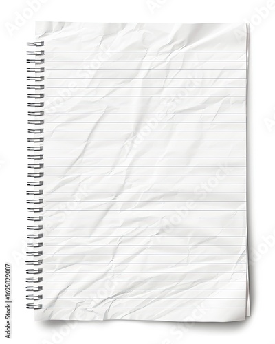Crumpled blank notebook page with spiral binding, showcasing texture and lighting in a simple background