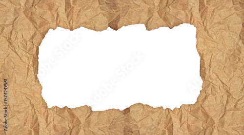 Crumpled Brown Torn Paper Texture Frame with Jagged Inner Rectangle Cutout