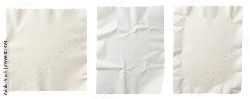 Crumpled White Paper Textures – Set of Three Isolated Paper Fragments with Visible Creases and Wrinkles for Graphic Design, Digital Art, and Collage Projects