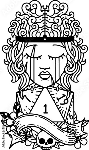 crying human barbarian with natural one d20 roll illustration