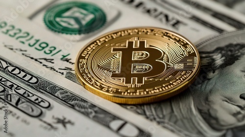 Cryptocurrency Coin on Dollar Bills