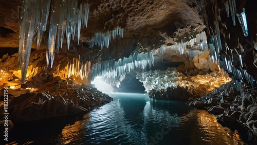 Crystal Cavern: Shimmering Crystals, Magical Glow, Underground River, Subterranean Wonder