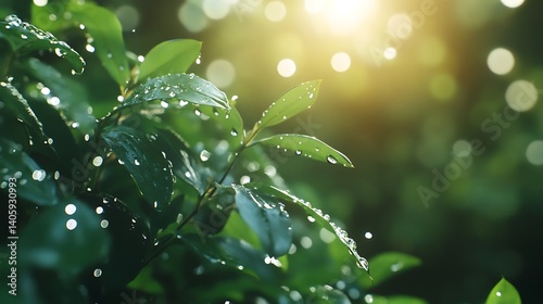 Crystal clear image of water droplets on lush green leaves high resolution picture
