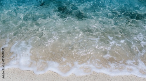 Crystal Clear Ocean Waves Gently Washing Over a Sandy Beach Landscape : Generative AI