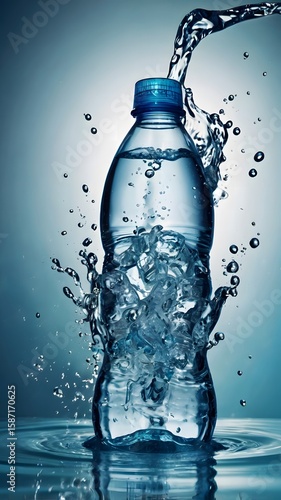 Crystal Clear Refreshment Dynamic Water Splash Captures Pure Hydration in a Bottle