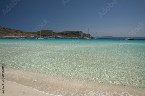 Crystal clear waters of exotic Simos beach at Elafonisos island in Greece
