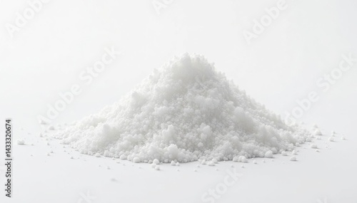 Crystalline sugar granules, bright white background, sugar photo, macro, sweet