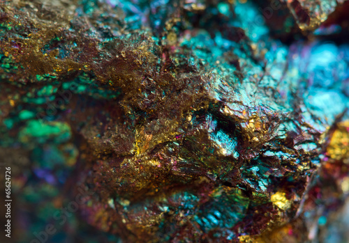 Crystal,nugget, gold, bronze, copper, iron. Macro. Extreme close