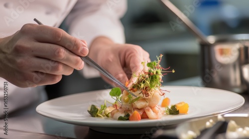 Culinary Artistry: Chef Precisely Plating a Gourmet Dish