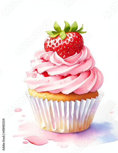 Cupcake with sweet strawberry artwork AI generative