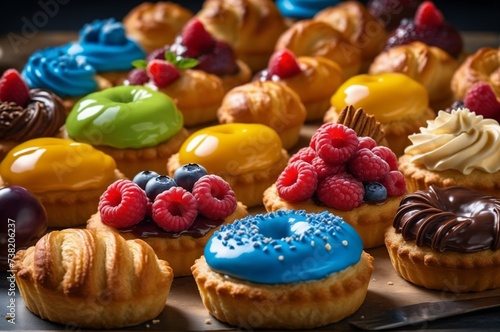Cupcakes with blueberries, raspberries, icing, chocolate and sprinkles