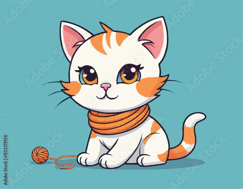 Curious Cartoon Kitten with Playful Expressions and Adorable Poses