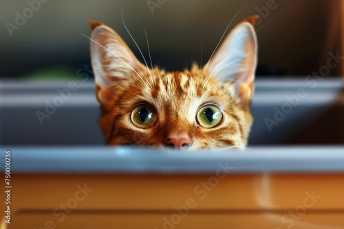 Curious Cat Examining Litter Box with Wrinkled Nose, Expressing Disgust and Inquisitiveness in Chaotic Setting