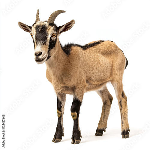 Curious goat tilting head, isolated on white background