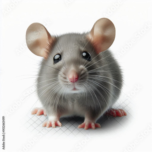Curious gray rat isolated on transparent on white background