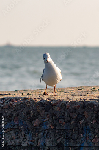 Curious seagull on a stone pier