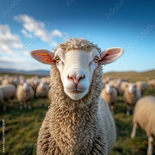 Curious Sheep on a Countryside Farm with Peaceful Background