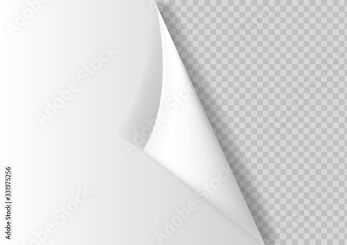 Curled corner with shadow on transparent background realistic .