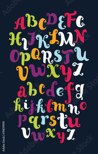 Curly hand drawn font alphabet symbol icon letters A through Z