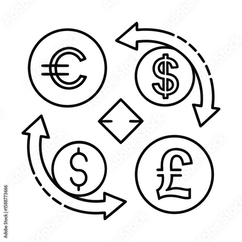 Currency Exchange Cycle Euro, Dollar, and Pound Sterling Conversion