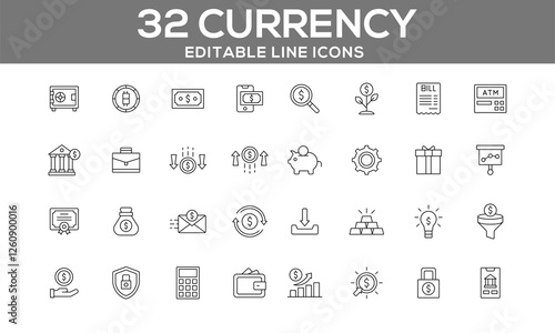 Currency Line Icons Set | Editable Money and Finance Icons for Web and App Design