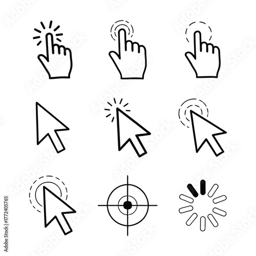 Cursor and Click Pointer Line Icon Set.