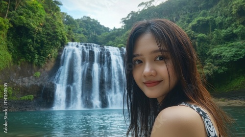 Curug Cinini waterfall at the feet of Mount Ciremai, Majalengka, West java, Indonesia.