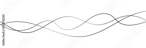 Curved black long lines on white, Wavy line horizontal divider outline minimalist background. Abstract black lines wave curve motion on white background in eps 10.