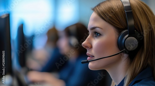 Customer experience trust analysis concept. Female customer service representative in a call center environment.