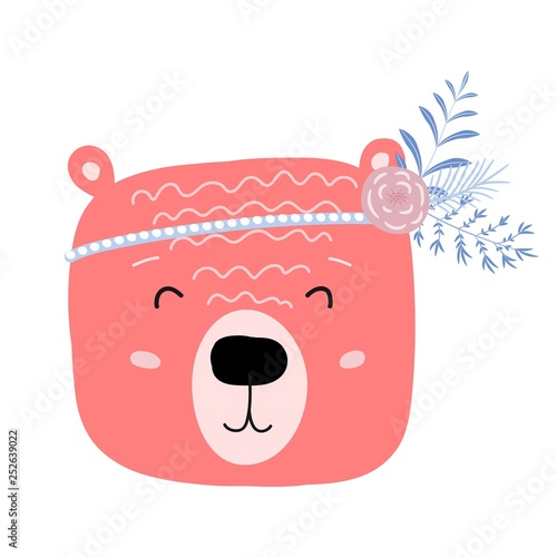 Cut bear , baby animal character for kid print. doodle illustrations in scandinavian style