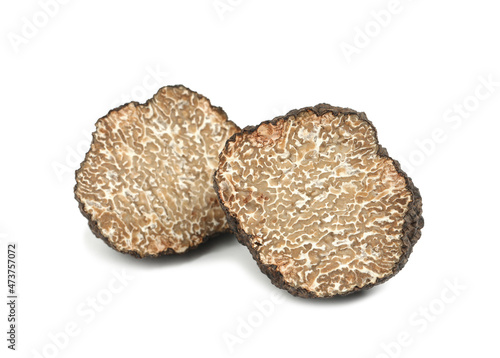 Cut fresh black truffle isolated on white
