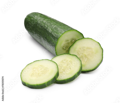 Cut ripe long cucumber isolated on white
