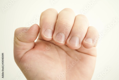 Cut the nails on the hands with nail clippers. Men's manicure. Male hand close up.