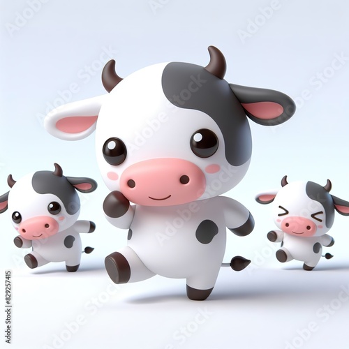 cute 3d cow dancing plain background
