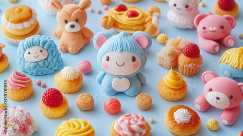 Cute and Colorful Dessert Display with Adorable Character Figurines