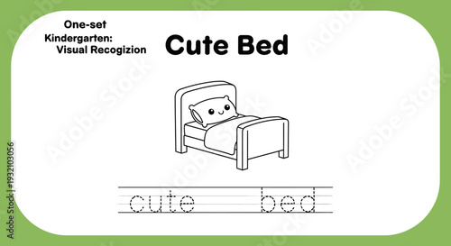 Cute Bed Cartoon Illustration for Kids Learning Visual Recognition and Tracing