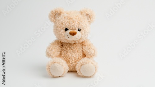 Cute Beige Teddy Bear Plush Toy Sitting Isolated on White Background