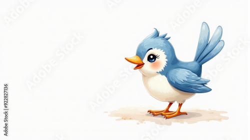 Cute Blue Cartoon Bird Singing Illustration for Kids and Educational Content