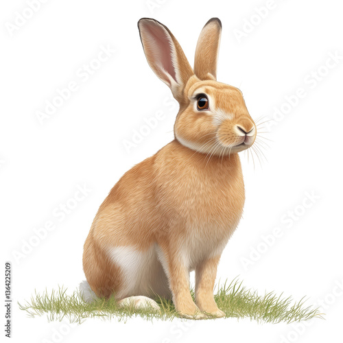 Cute Brown Rabbit Sitting on Green Grass in Forest