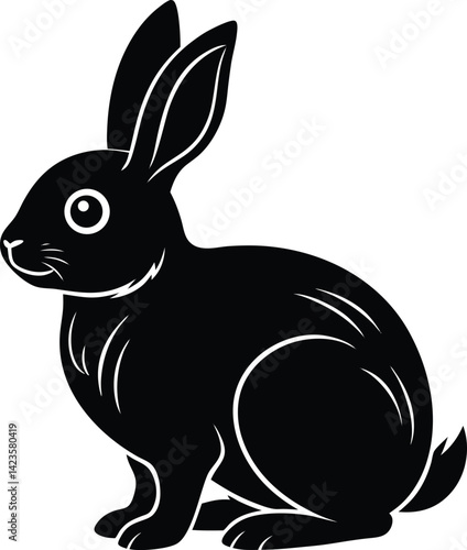 Cute Bunny in Black | Rabbit Silhouette Vector for Print, Easter Crafts & Animals Vector File