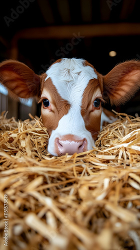 Cute Calf Barn Straw Hay Agriculture Farming Animal.